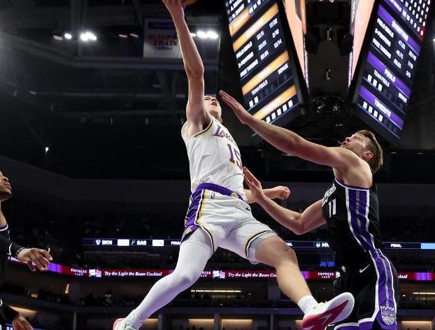比赛开局湖人内线率先发力,八村塁背身强打勾手命中,艾顿挡拆顺下接传球完成单手扣篮,二人连续内线取分打得极具侵略性。国王这边拉文迅速回应,突破抛投+空位三分“里突外投”连得7分,不过湖人全员状态火热,凭借更高效的攻防转换,首节结束时以9分优势领先。