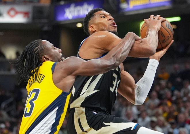 末节字母哥休息时,第二阵容竟然还将分差拉开到10分,扬尼斯得到了足够的休息。但字母哥登场后步行者将分差缩小到5分,扬尼斯在末节的效率值也略有下滑,决胜时刻他突破制造犯规,字母哥为特伦特送出关键助攻,还剩14秒两队平,字母哥中投压哨绝杀了。
