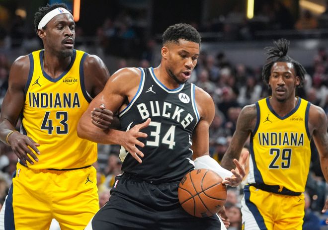 易边再战,字母哥外线三分都进了,今年放他投他真进啊,篮下又是暴扣虐框,单节5中4+三分1中1拿到9分1助攻,三节打完扬尼斯15中12+三分1中1拿到28分8篮板4助攻2抢断,命中率高达80%,步行者这个内线防守对他来说真的不行,西卡也扛不住。