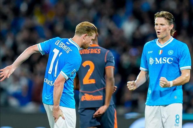 在上周末对阵国米的比赛中,德布劳内点射破门,但在射门时拉伤了大腿,根据那不勒斯官方的公告,他的右大腿股二头肌存在严重损伤,现在已开始康复治疗。